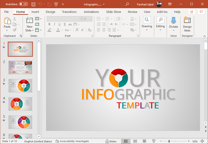 The template gives everything from useful infographics that are easy to edit to text-heavy layouts for presenting information. The circular infographic in this template is available in 3, 4, 5 and 6 tier variations.