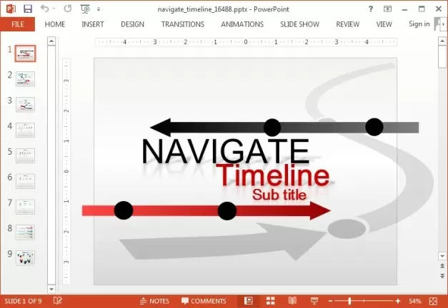 Navigate Timeline is a custom timeline maker toolkit for PowerPoint which contains editable timeline slides with animations.