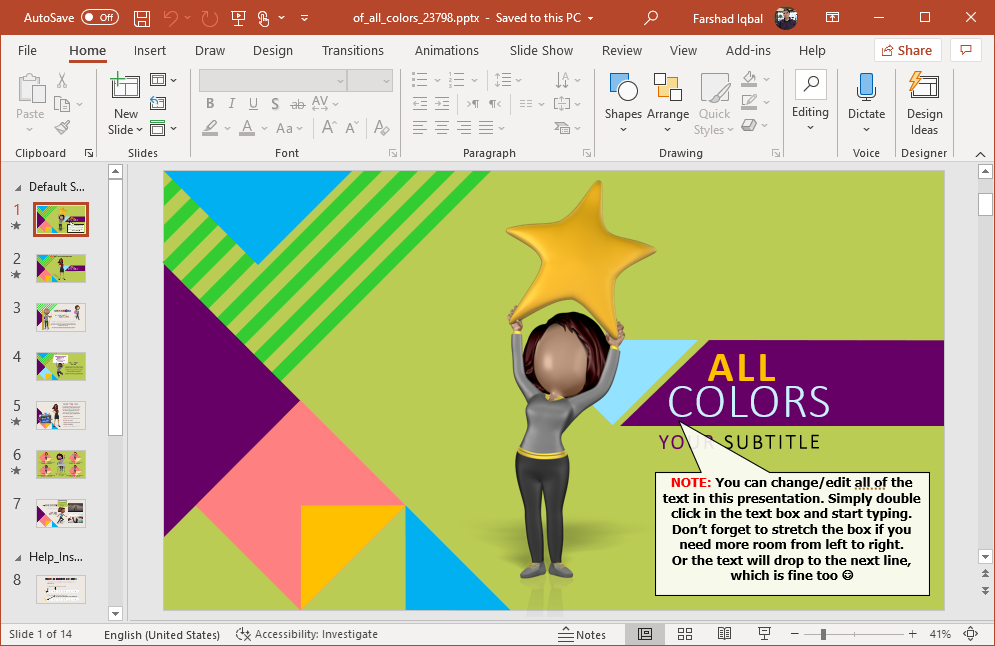 The template contains as many as seven slides with a wide variety of customizable content for you to use as a toolkit. You will also find some help from the instructions given after the seven sample slides. These slides provide screenshots and explanatory text to help you customize the animated slide layouts in the template.