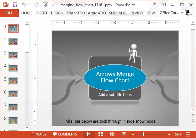 A Flow Chart lists down the steps of a complex activity with the aid of specific symbols that demonstrate the process in visual form from start to end. While there are a number of conventional flowchart PowerPoint templates that can be used for this purpose, sometimes it might be best to use a template that is out of the ordinary, such as the Animated Merging Arrows PowerPoint Template.