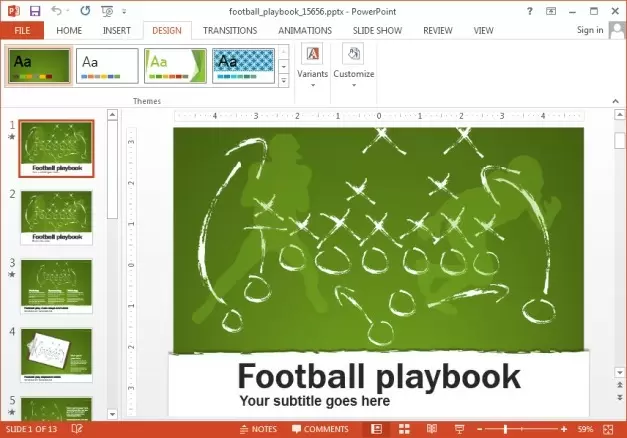 This animated football themed presentation template is available for PowerPoint and Keynote, including the versions mentioned below:
