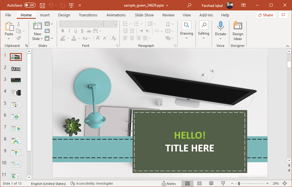 A good infographic template for PowerPoint should ideally provide adaptable layouts that can be used by the presenter for various topics. Everyone is not looking to design business diagrams or slides about a specific concept. It is good to have slides that add variety. With green layouts containing editable infographics, the Animated Green Infographics PowerPoint Template serves as a handy infographic maker for PowerPoint.