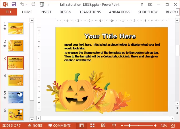 Fall Saturation is a unique animated template for PowerPoint presenters which provides layouts that depict both Halloween and fall themed backgrounds.