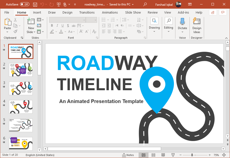 Roadmaps and timelines are widely used in project management. To design a roadmap or timeline, you can use readymade templates made specifically for this purpose. Templates like the Animated Road Timeline for PowerPoint can help you create a complete presentation with specifics of your project or timeline, as well as provide slides which can be used for inserting in existing presentations.