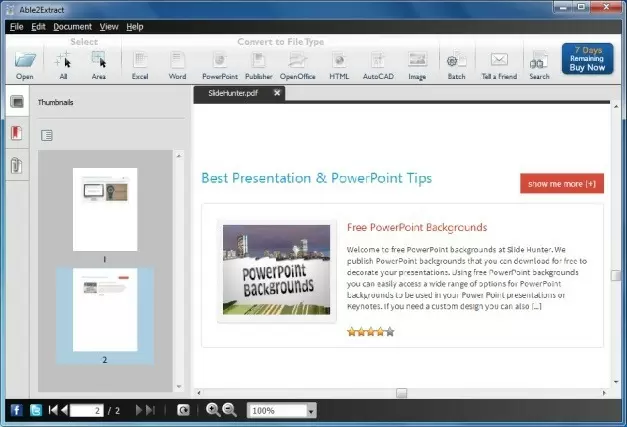 This is a more advanced PowerPoint to PDF converter which provides both conversion and document editing features. Unlike, PageFlip, the converted slides are not in the form of static images and you can fully edit the converted PDF pages as PowerPoint slides. Moreover, the app can even convert encrypted PDF files, which can help you create PowerPoint presentations out of PDF files from which the content may be hard to extract.