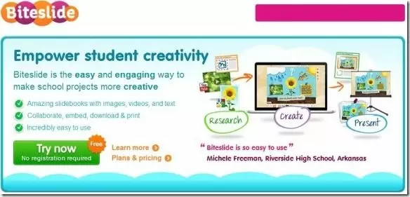 Getting children to engage in a collaborative project can become quite easy with the help of online services. Once such service is Biteslide, which is both simple and feature rich enough to help students and teachers create PowerPoint like slides online with multimedia content. Biteslide provides a canvas that can be used to create presentations, called Slidebooks. These Slidebooks can comprise of a collage, scrapbook, moodboard or even a portfolio. Biteslide has been specially designed for students and teachers and serves as an engaging platform for e-learning.