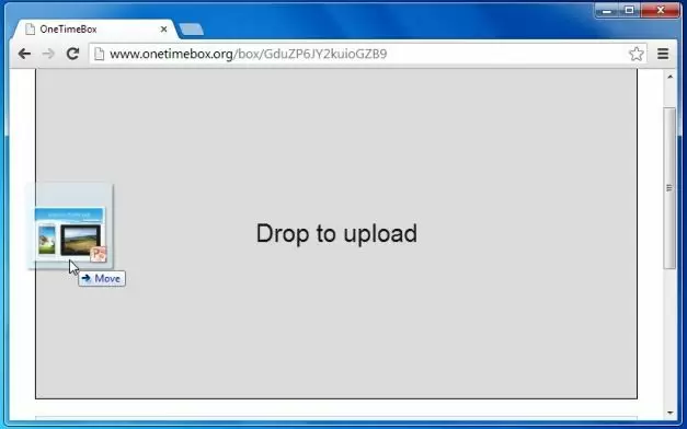 To upload a file, go to OneTimeBox, click ‘Create Your Box’ and upload files. Files can be easily uploaded using drag and drop and are instantly uploaded to your disposable folder. The file uploading time of OneTimeBox was quite impressive and we did not have to wait for several minutes to upload a simple PowerPoint file. Furthermore, one does not have to sign up for any kind of account or risk receiving spam emails, as OneTimeBox has no such requirement.