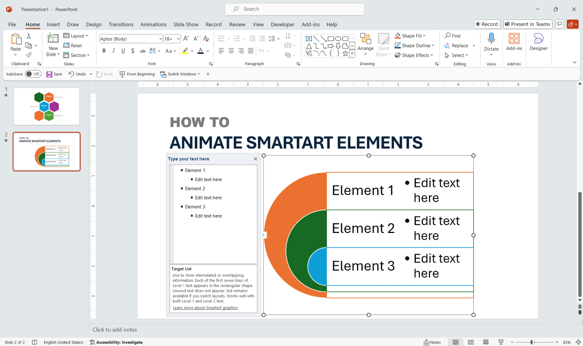 However, there is a small trick that helps you animating each individual shape in the diagram so you can apply different animations and timing for your diagram animation.