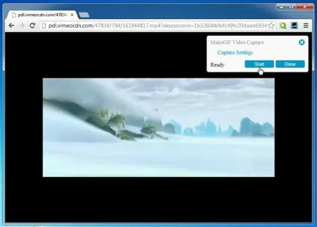 Once the Start button is clicked, the extension will begin capturing frames from the video, you can Pause the video to capture selective parts and click Done to begin rendering the GIF image.