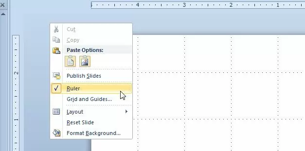 The ruler in PowerPoint as well as any other presentation or image editing software can be a useful tool when you need perfect pixel alignment. PowerPoint has a ruler setting that will display a basic but useful ruler in the screen.ย You can easily configure PowerPoint 2010 to show the ruler during slide edit mode by right clicking on the slide and then clicking on Ruler option.