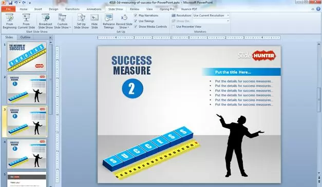 Free Measuring Success PowerPoint template is a free presentation template for business that you can download to make presentations from startups to Fortune 500 companies.