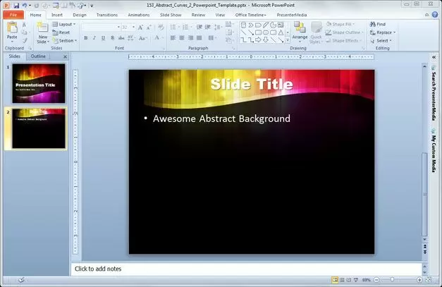 Abstract Curves 2 PowerPoint Template is another abstract background for Microsoft PowerPoint presentations that you can download if you need a colorful and original style design for your presentations.