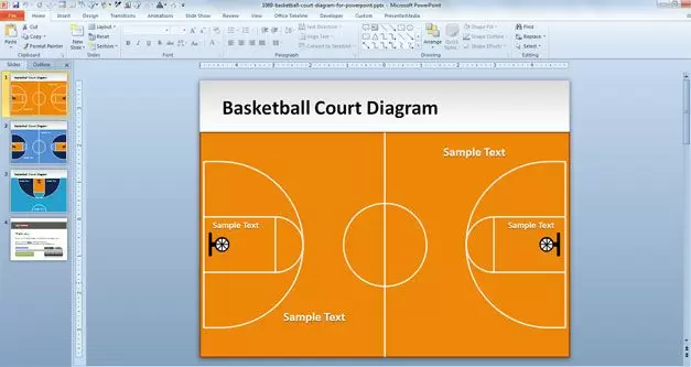 This unique free basketball court layout contains three slide designs with basketball courts. You can download free basketball court PowerPoint template and use it in Microsoft PowerPoint 2007, 2010 and 2013.