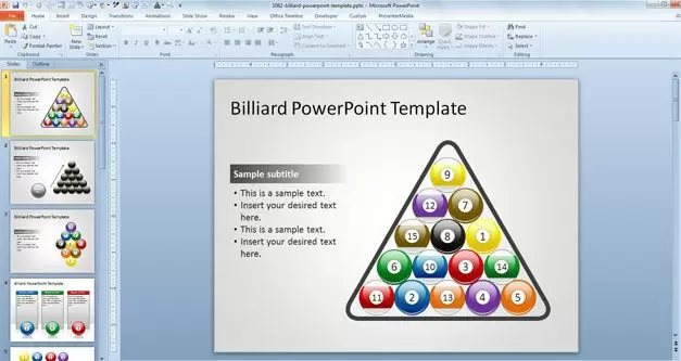 You easily edit the billiard ball shape for PowerPoint and change the ball numbers as well, or if this free game PowerPoint template with billiard balls is not useful for your presentation you can download other free PowerPoint themes and backgrounds for Microsoft PowerPoint 2010 and 2013.