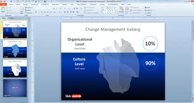The Change Management Iceberg Template for PowerPoint is a visually engaging slide design that illustrates the complexities and hidden challenges of managing change within an organization.