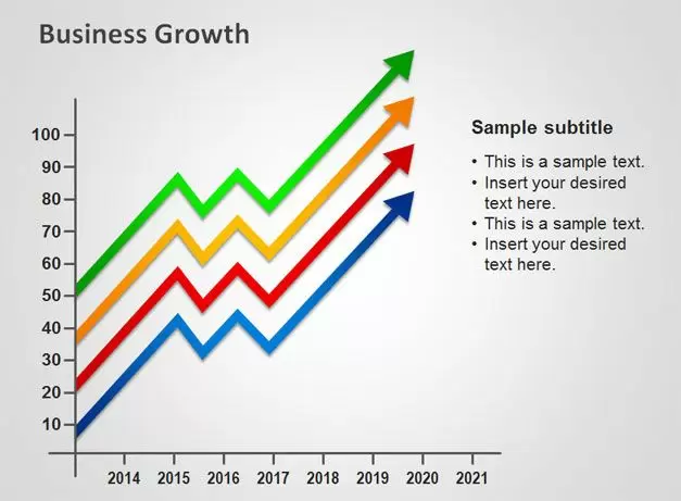 Free business growth PowerPoint templates and business concept slide designs are compatible with Microsoft PowerPoint 2010 and 2013, but you can use the diagrams and charts contained in this PPT template with compatibility to PowerPoint 2007 templates and Microsoft Office for Mac.
