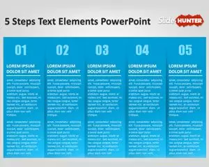 This is a very creative & free five steps PowerPoint template with textbox that fits along the slide design and can be used to describe a 5-steps process using Microsoft PowerPoint and textboxes.
