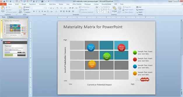 Free Corporate Social Responsibility template for PowerPoint with materiality matrix design is a simple slide design that you can download and use for presentations on responsible business.