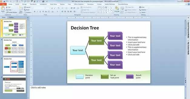 Decision Tree Template for PowerPoint is a free PowerPoint template and slide design with a decision tree diagram that you can download for presentations in Microsoft PowerPoint 2007 and 2010.