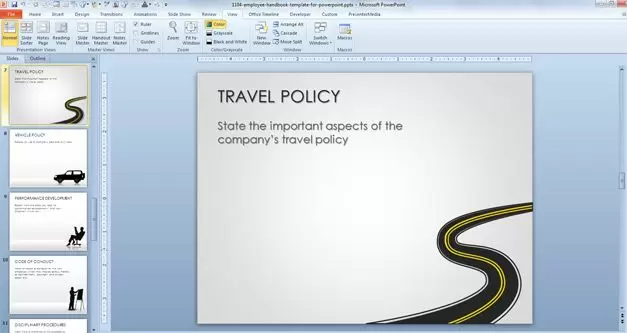 This free employee handbook template for PowerPoint is a good sample of simple template that you can download and use if your small and medium business is starting to grow quickly.