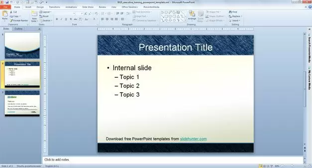This is a simple PPT Template that you can download to make executive PowerPoint presentations or executive summary PPT slides. You can download this free blue PowerPoint template with curves and a nice internal slide with enough space for your presentation content. The slide design has a master slide with curve effects and it is suitable for corporate strategy presentations, management PowerPoint templates and presentations and executive summary.