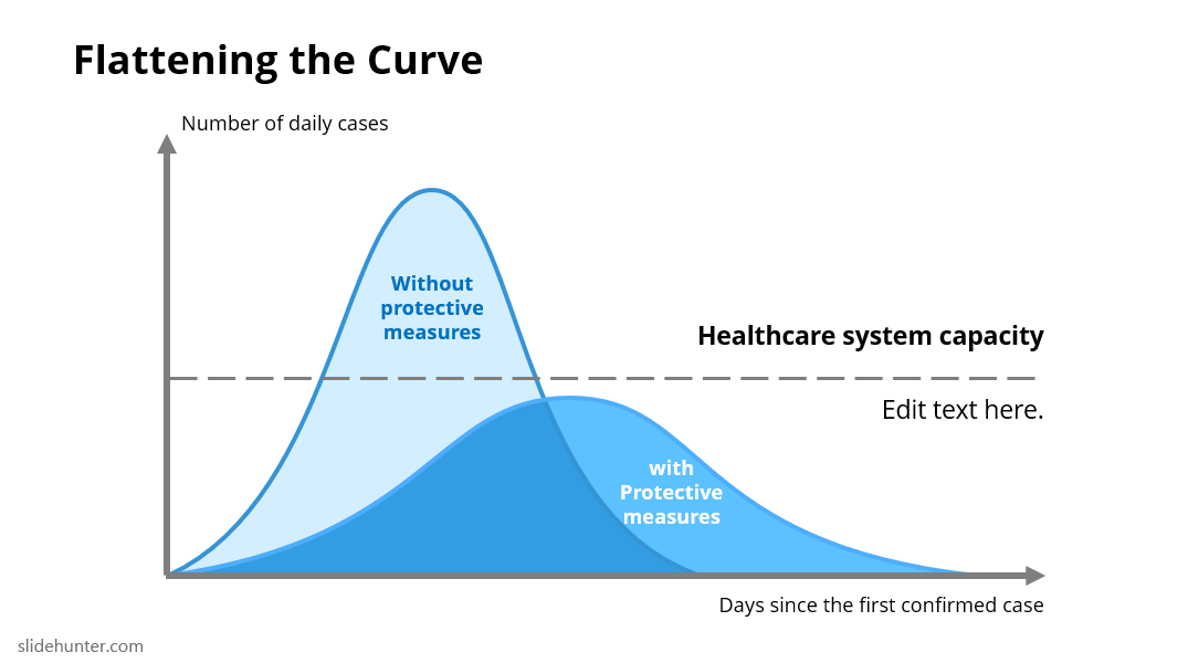 This editable version of the Healthcare System Capacity curve can be downloaded and used for free to explain the importance of taking protective measures to handle an epidemic or pandemic. You can download the editable curve template and customize it with your own colors and styles.