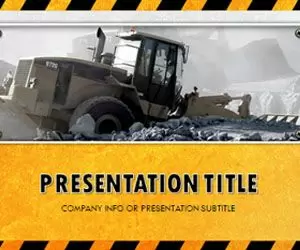The slide deck contains a creative cover slide with a heavy machine and yellow background. Then, you can find an internal slide with space to include the presentation title. The internal slide follows a consistent color and style that let you include diagrams and information about the construction or industrial topic.