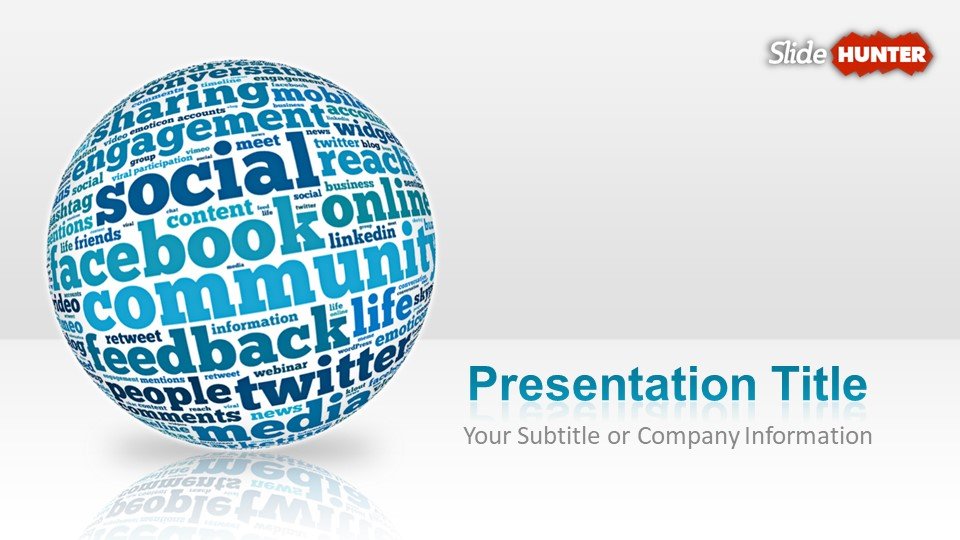 Widescreen Blue Sphere Social Media PowerPoint Template is a free PowerPoint template that you can download to make social media presentations using the 16:9 format. You can also make awesome presentations in Microsoft PowerPoint for social media agencies. This free blue PowerPoint template has a 3D Sphere with a word cloud effect inside. You can customize the presentation title and content.