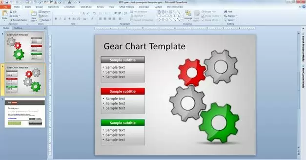 Gear Chart PowerPoint template comes with two nice slides including color gears in the slide and table templates that are used as legend.