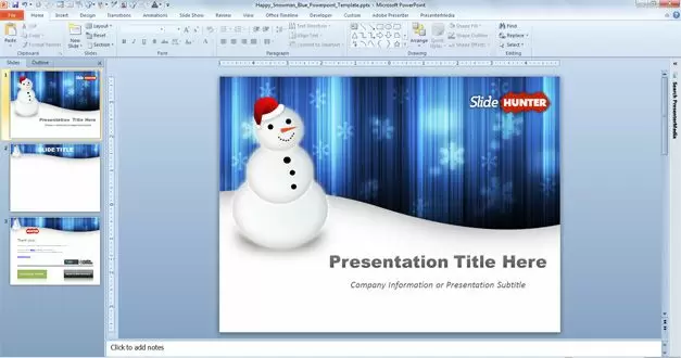 Happy Snowman Blue PowerPoint Template is a nice background for Christmas that you can download to make presentations in Microsoft PowerPoint 2010 and 2007. This free Christmas template has a snowman design with a blue background and you can make awesome Christmas presentations and New Year PowerPoint presentations with a Holidays slide design.