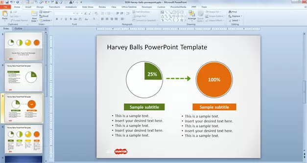 Simple Harvey Balls for PowerPoint is a free Harvey Balls template for PowerPoint presentations that you can use to represent percentage values in your slides.