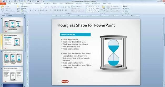 You can download this free hourglass PowerPoint template with editable shape created in PowerPoint and different slide designs with hourglasses on different states (full, semi full and empty).