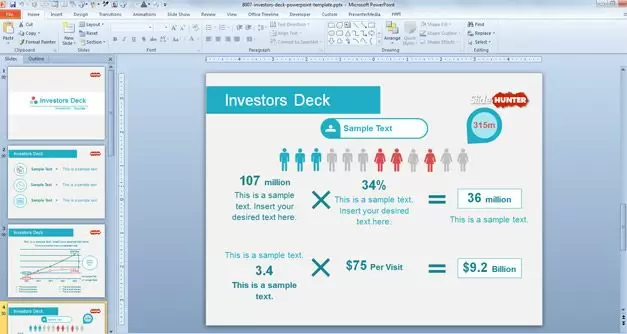 Investors Deck PowerPoint template is a free presentation template that you can download to prepare awesome presentations for Venture Capital firms or investors. This free PowerPoint template contains a few investor slide designs including charts, infographic elements as well as slides with text areas.