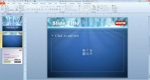 You can download this free PPT template slide design to decorate any nature presentation or presentation on hypnoses, adding famous quotes to PowerPoint presentations, poems as well as other presentations online. You can download Light Rays Blue PowerPoint Template for Microsoft PowerPoint 2010 and 2007.