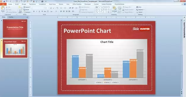 The example above shows a simple PowerPoint chart embedded in this red PowerPoint template so you can see how it looks when you add PowerPoint graphics to the internal slides.