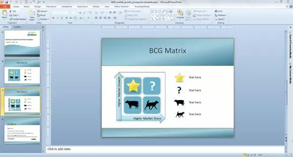 Market Share PowerPoint Template is a free marketing template for PowerPoint including a BCG Matrix diagram in Microsoft PowerPoint.