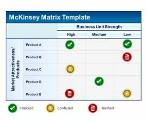 The free PowerPoint presentation template contains simple but nice table in PowerPoint with business units and market attractiveness. You can download this free McKinsey PPT template for Microsoft PowerPoint presentations.