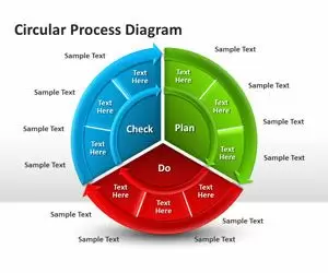 Se trata de un diseño de diagrama circular ideal para crear presentaciones atractivas con PowerPoint y únicas que deleiten a la audiencia. El diseño de diagrama circular puede servir como complemento a otros gráficos de PowerPoint por ejemplo para describir un proceso cÃclico, como por ejemplo el Plan-Do-Check-Act.