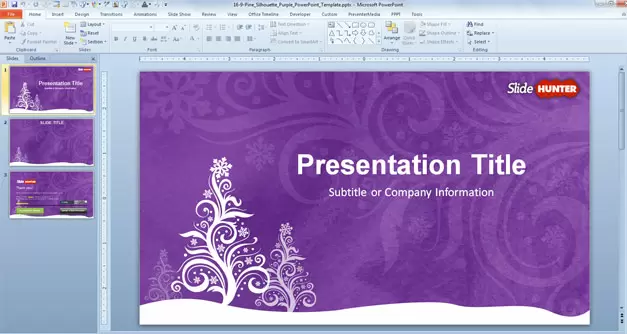 This and other presentation template on SlideHunter contains a cover slide design with Christmas tree and internal slide examples that you can use in Microsoft PowerPoint. Alternatively you can download other free Christmas PowerPoint templates.