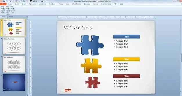 Free Puzzle PowerPoint template can be used for presentations on problem solving as well as decision making. The puzzle template for Microsoft PowerPoint comes with different slide layouts that you can use to make presentations. For example, one of the slides contains an individual puzzle piece with textbox so you can enter your description.