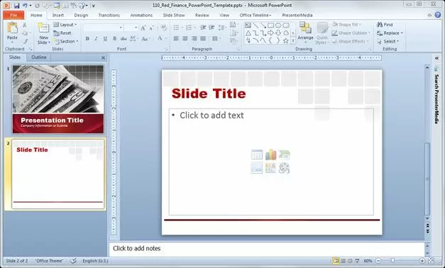 You can download this free red Finance PowerPoint template with cash image in the slide design to make awesome financial slides in PowerPoint. This PPT template has a white background on the internal slide and a catchy image on the master slide with bills and money (USD) ready to be used as the presentation cover in PowerPoint 2007 and 2010. This free sample PowerPoint template can be used to decorate your presentation slides.