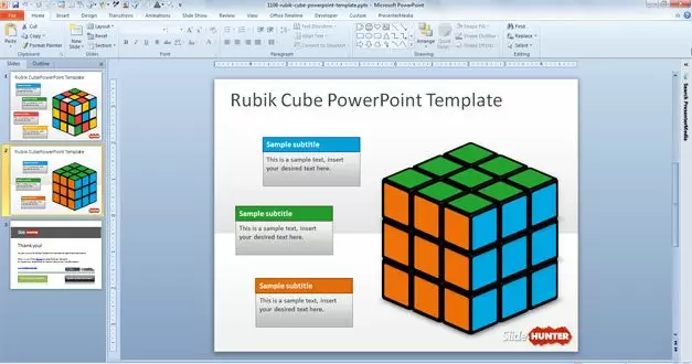 Free Rubik Cube PowerPoint template is an impressive slide design for presentations that you can download for free to decorate your slide decks. Free rubik PPT template contains an illustration of the popular Rubik Cube that only smart people can solve and you can use this free template for PowerPoint to decorate your presentations on IQ, intelligence as well as problem solving presentations or logical thinking slide designs.