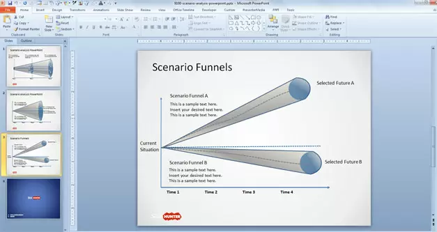 This Scenario Analysis template for Microsoft PowerPoint contains useful slide designs with scenario analysis and scenario planning for PowerPoint presentations including awesome scenario funnel diagrams that you can copy and paste into your own slide decks.