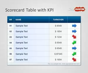 Free Scorecard Table for PowerPoint with KPI is a free PowerPoint template that you can download to make presentations with scorecard diagrams in Microsoft PowerPoint and scorecard designs, for free. This free Scorecard template for PowerPoint contains a nice scorecard diagram created with a simple table. You can free download scorecard PPT template to create simple dashboards with Microsoft PowerPoint and boost your productivity while you save time and money using free PowerPoint templates.