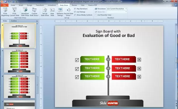 Sign Board PowerPoint Template with Good or Bad Evaluation style is a free PowerPoint template with unique diagrams that you can use to make comparisons in PowerPoint. This free PowerPoint diagram and template for presentations let you compare two different situations (good and bad scenarios).