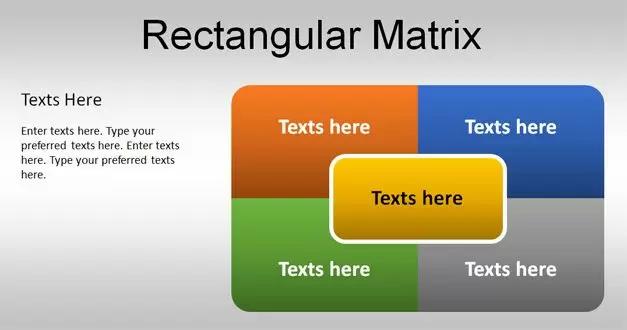You can download this matrix template for PowerPoint to make slides on product and feature comparison and represent business models with a quad table design. You can use the following matrix template for PowerPoint & Google Slides in many different scenarios, for example:
