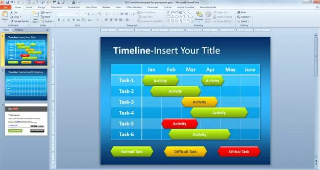 It is straightforward to edit this timeline template for PowerPoint; you can use the timeline PPT template to make simple timelines in Microsoft PowerPoint presentations for task planning or advanced project management tasks. Also, you can download this easy timeline template to create a Gantt chart in PowerPoint.