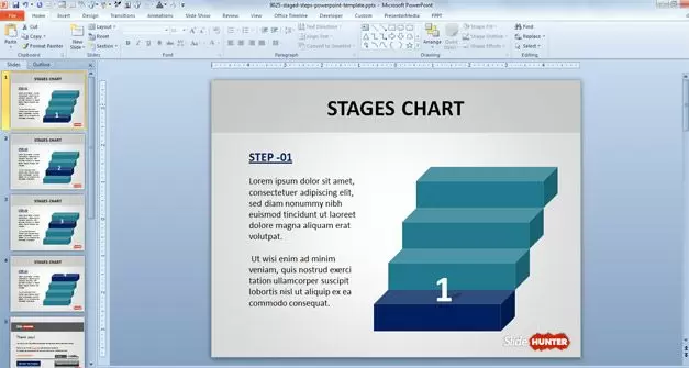 Free Stages Chart PowerPoint Template is a simple template for PowerPoint that you can download if you need to make stage diagrams with stairs illustration.