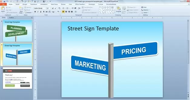 Free Street Sign PowerPoint template is an original presentation template for marketing presentations but also useful for other presentation needs that contains nice slides with street signs. You can download this free PPT template for business presentations to show different directions or decisions to take. You can use this template for business management presentations or decision making PPT presentations. This is a creative way to display illustrations in a PowerPoint presentation even for planning and product development PowerPoint presentations.