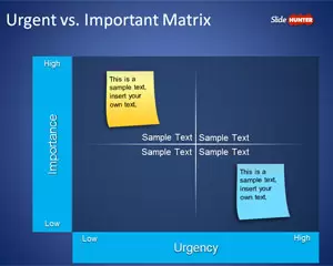 You can make PowerPoint presentations on a sense of Urgency as well as Get Things Done PowerPoint presentations using this task matrix with priority levels.